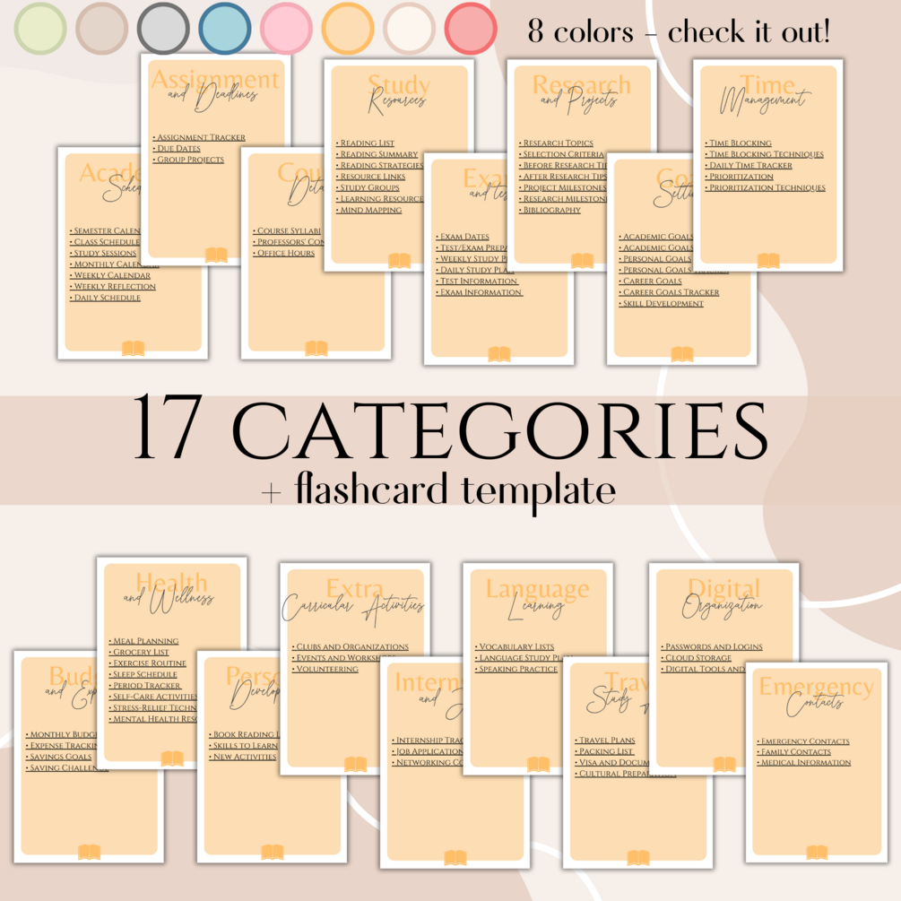 Discover our Orange Digital Student Planner – Your Ultimate Ally for Enhanced Productivity and Streamlined Organization. Available in 4 different sizes and 7 different colors! This particular color might not resonate with you? Take a look at my profile; this planner is also accessible in other colors that might be more to your liking. Embrace Effortless Planning and Elevate Your Productivity Today. It includes: